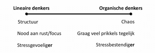 Iedereen denkt anders: de één houdt van structuur en plannen, de ander werkt juist vanuit ideeën en creativiteit. Beide zijn goed. Door je eigen manier van denken te herkennen én bespreekbaar te maken met collega’s, voorkom je frustratie en stress. Accepteer verschillen: dat maakt samenwerken juist sterker.